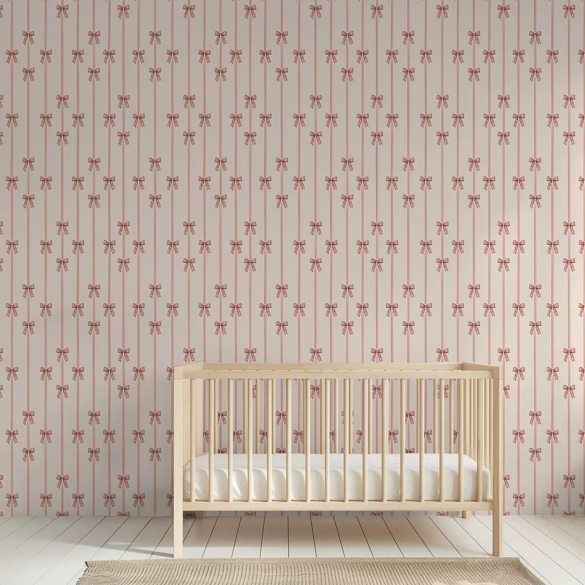Tapeta Vertikalni trakovi z mašnicami, slonokoščeno ozadje Št. a00653