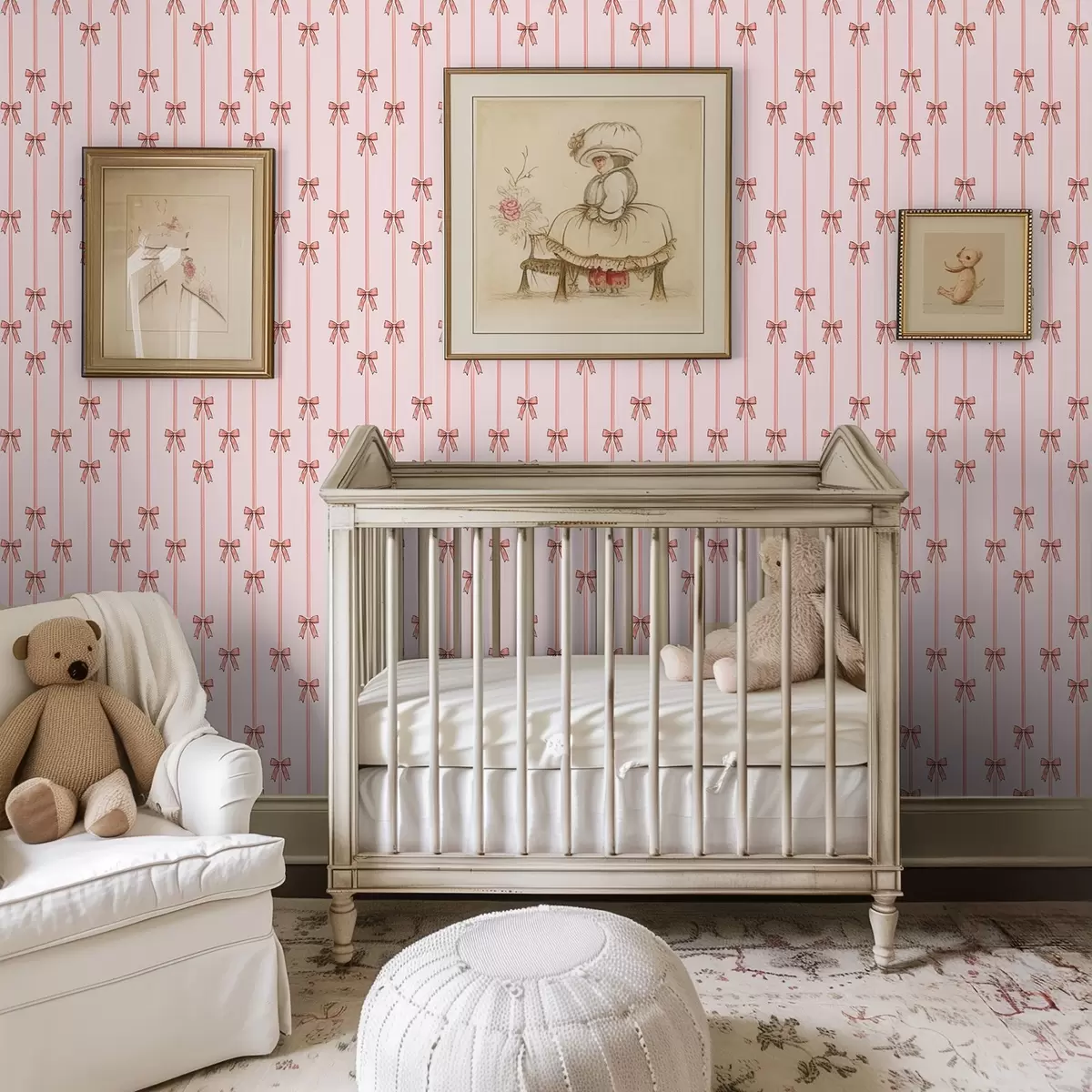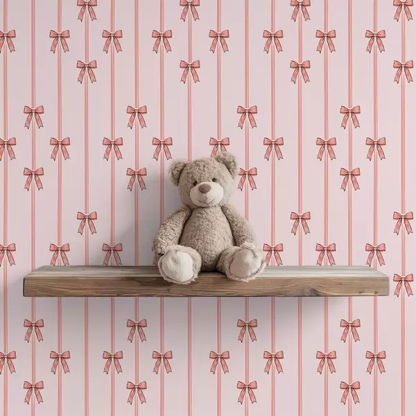 Tapeta Vertikalni trakovi z mašnami, roza ozadje Št. a00653v2