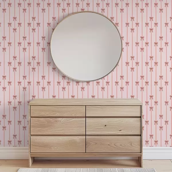 Tapeta Vertikalni trakovi z mašnami, roza ozadje Št. a00653v2