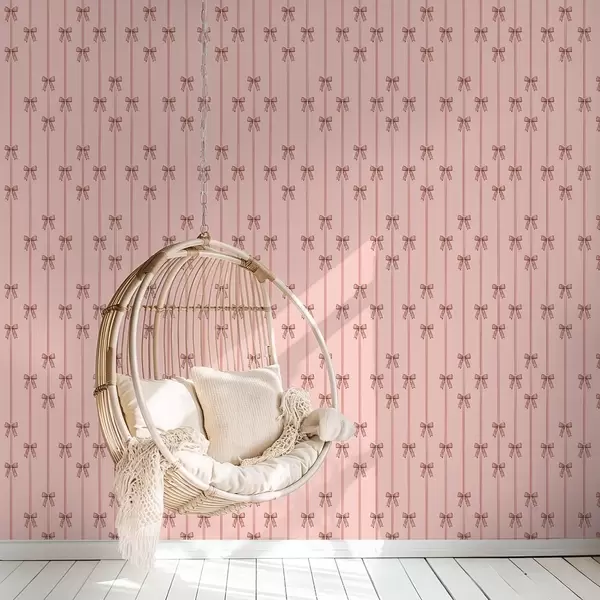 Tapeta Vertikalni trakovi z mašnicami, koralno roza ozadje Št. a00653v3