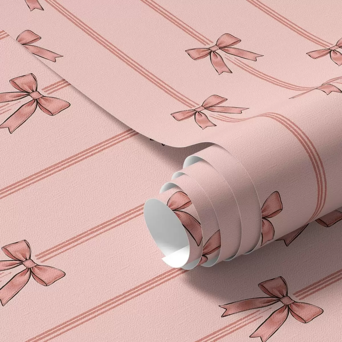 Tapeta Vertikalni trakovi z mašnicami, koralno roza ozadje Št. a00653v3