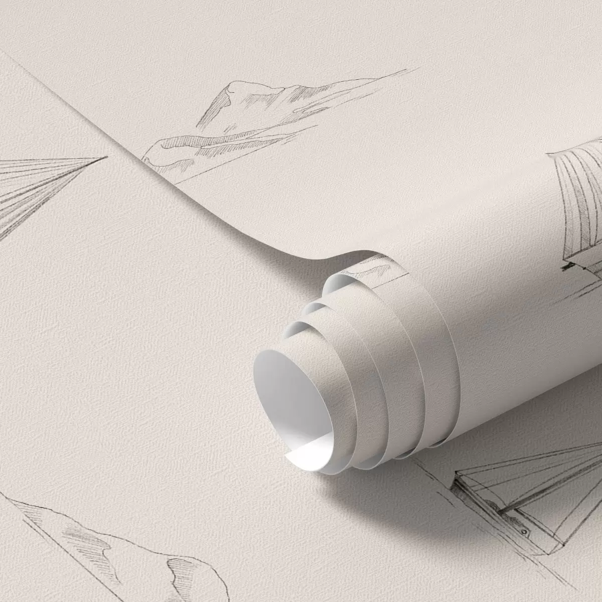 Tapeta Skice jaht in otokov, toplo kremasto ozadje Št. a00654v1