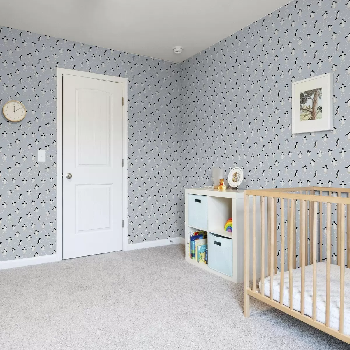 Tapeta Pingvini na svetlo modri podlagi, ritem stopinj Št. a00655v2