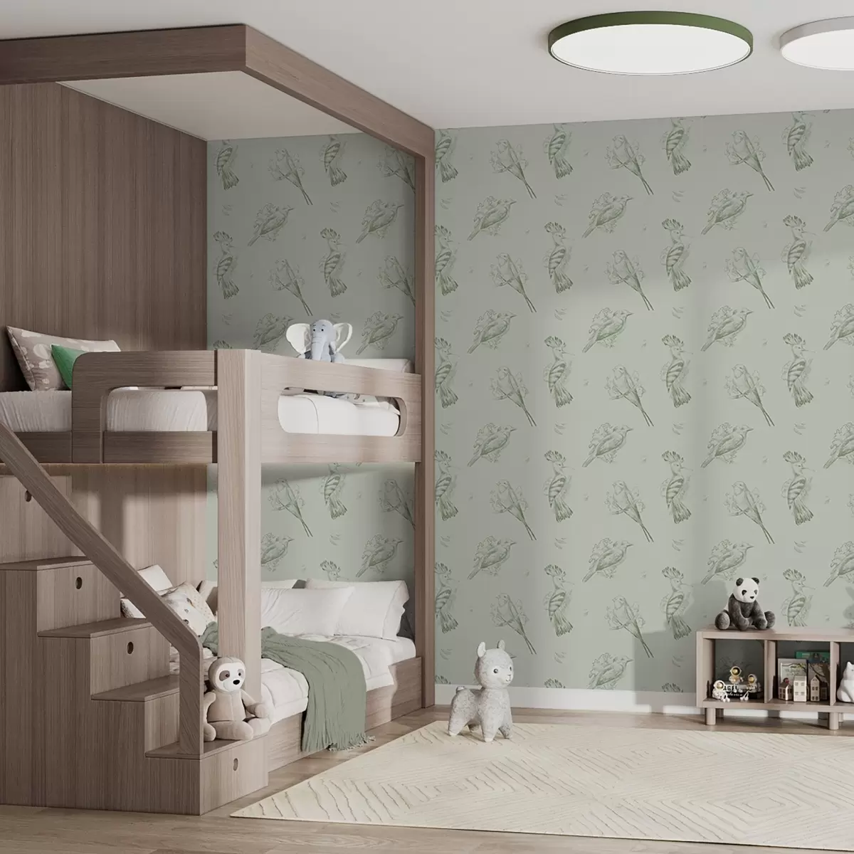 Tapeta Ptica toile: skica ptic na sivo-zelenem ozadju Št. a00656v1