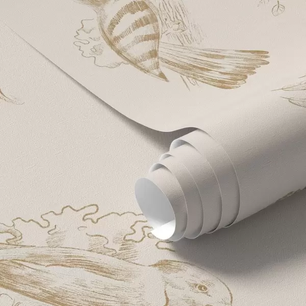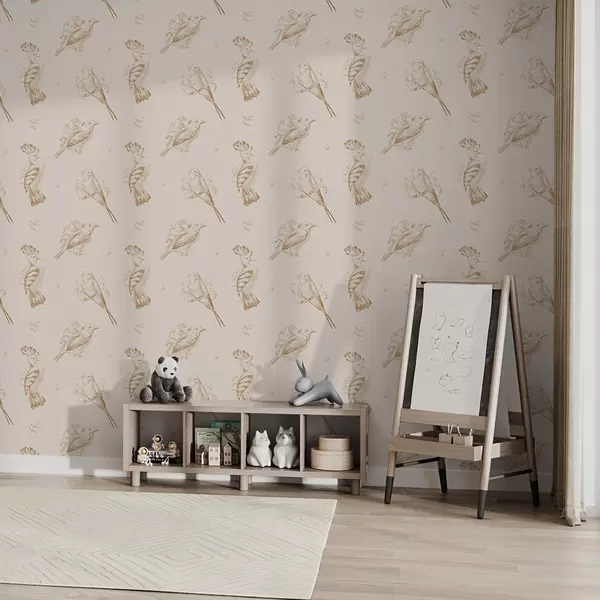 Tapeta Ptica toile: skica ptic na topli bež barvi Št. a00656v3