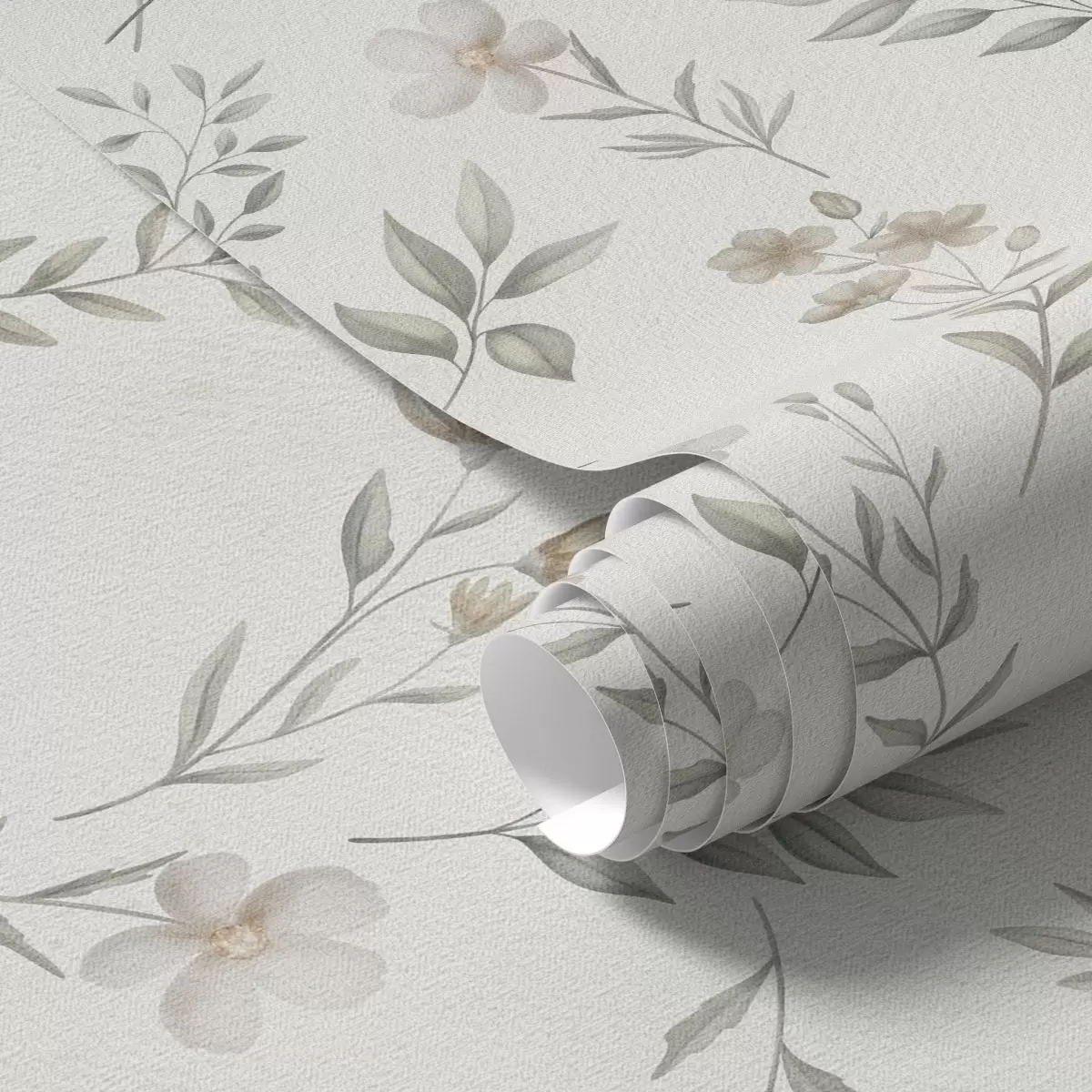 Tapeta Majhne akvarelne veje in cvetje na svetlem ozadju Št. a00665