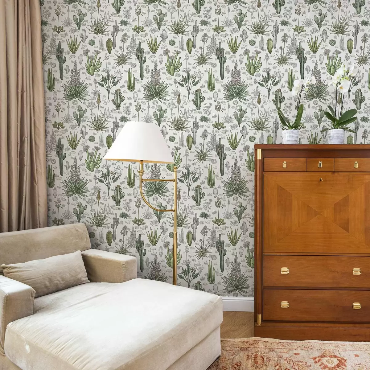 Tapeta Kaktusi in sukulente na svetlem ozadju, linearni slog Št. a00666v1