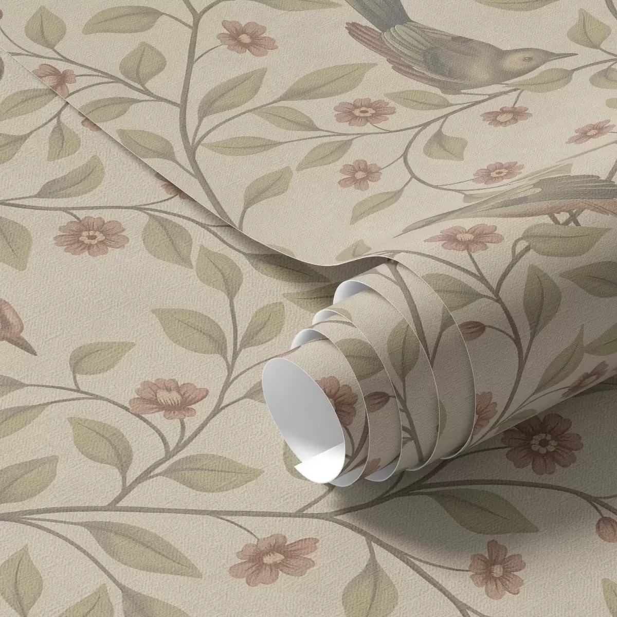 Tapeta Ptice na cvetočih vejah, toplo bež ozadje Št. a00670
