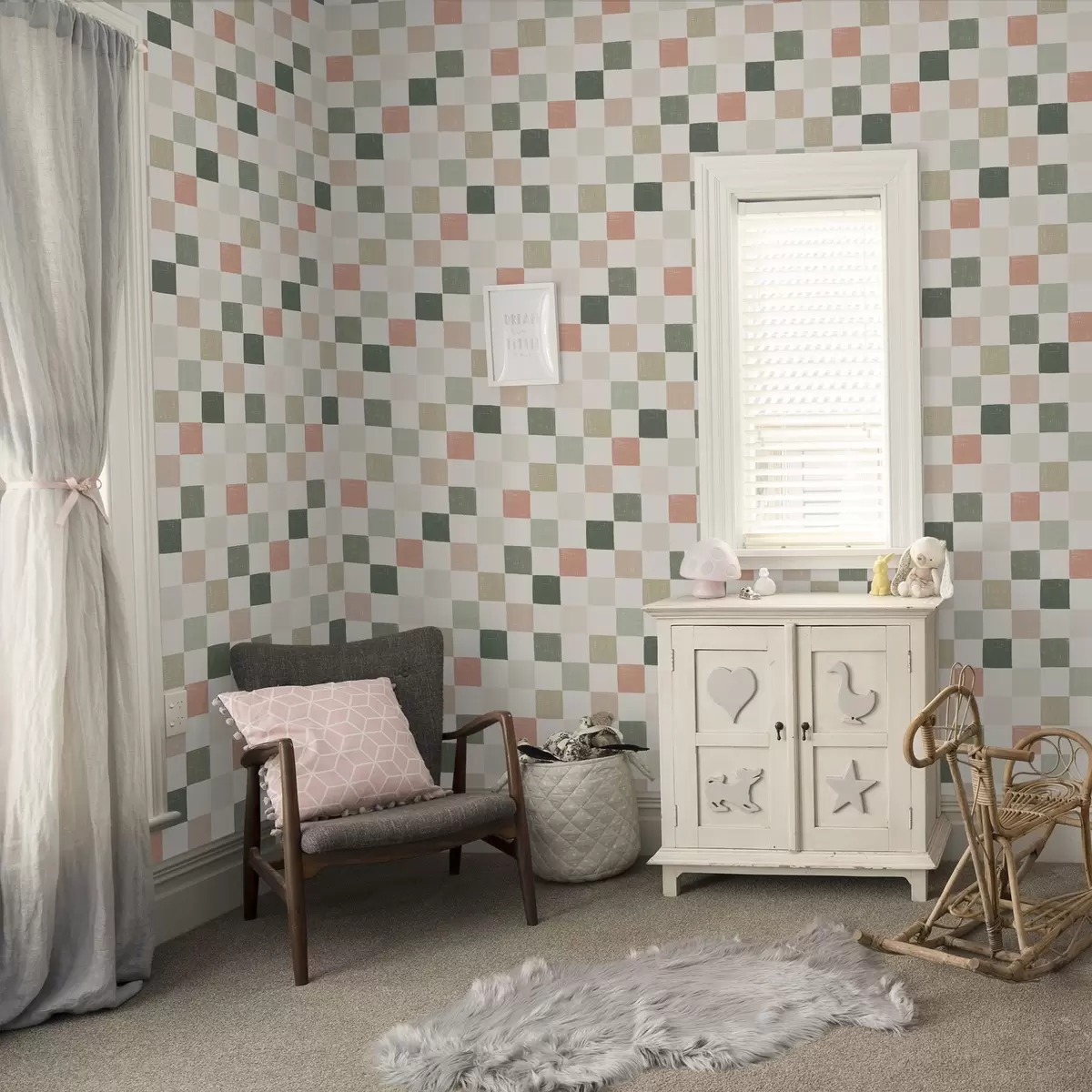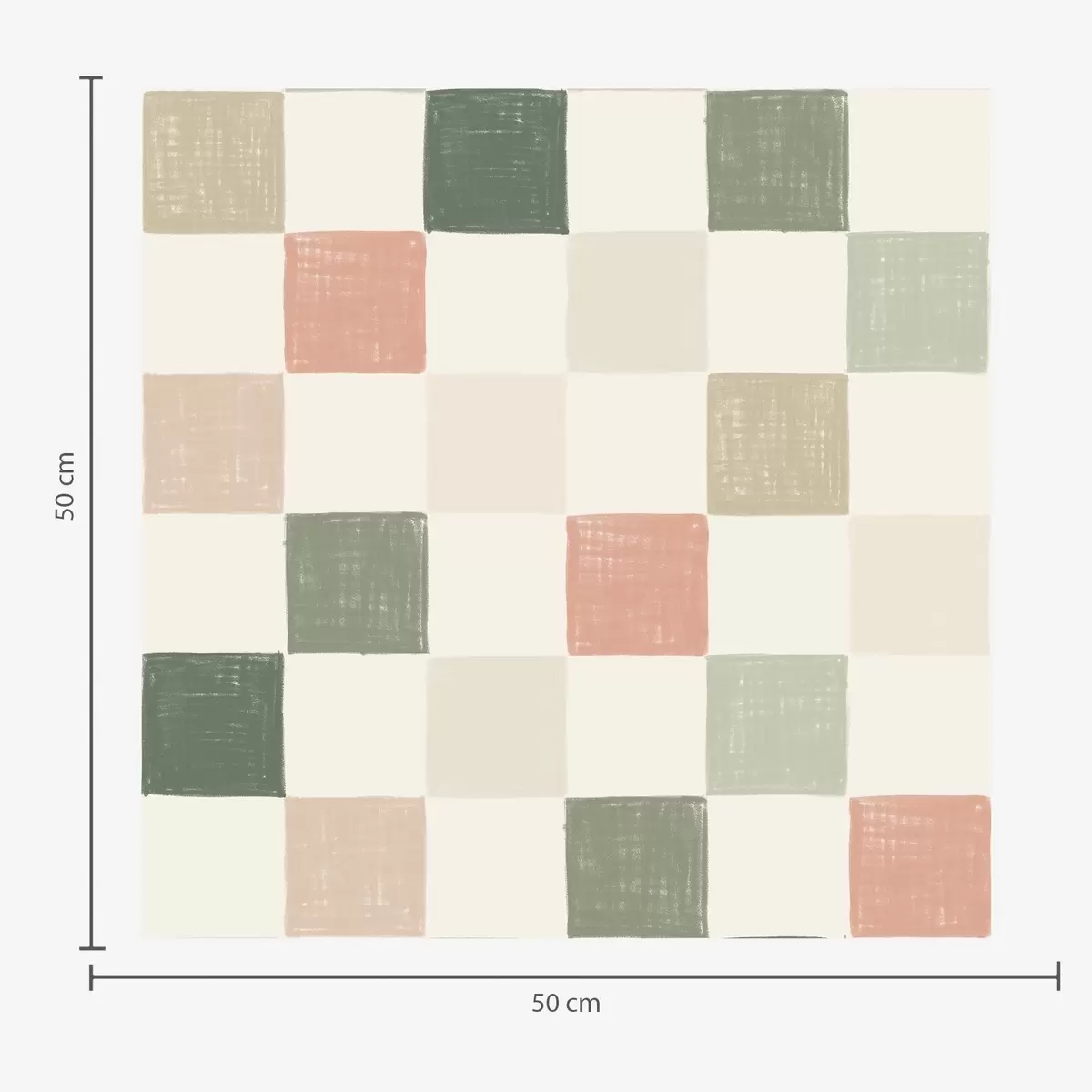 Tapeta Mehka karirana tkanina v pastelnih zelenih, rožnatih in bež barvah Št. a00676