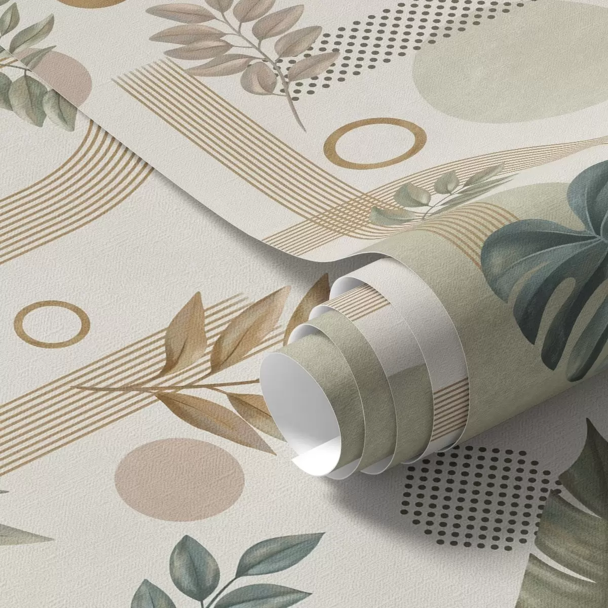 Tapeta Listi in geometrijske oblike v mirnih toplih odtenkih Št. a00677