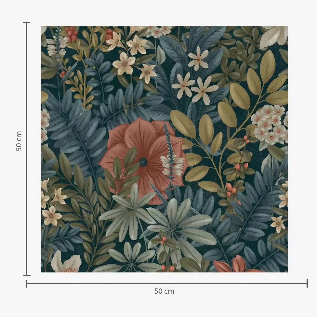 Tapeta Temno ozadje z gostimi cvetovi in listi v toplih barvah Št. a00678