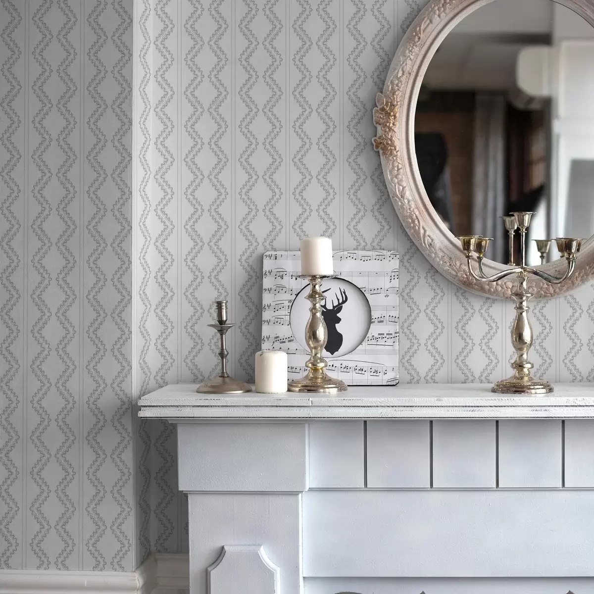 Tapeta Čipkasti zigzagi, nevtralna siva barva Št. a00689v2