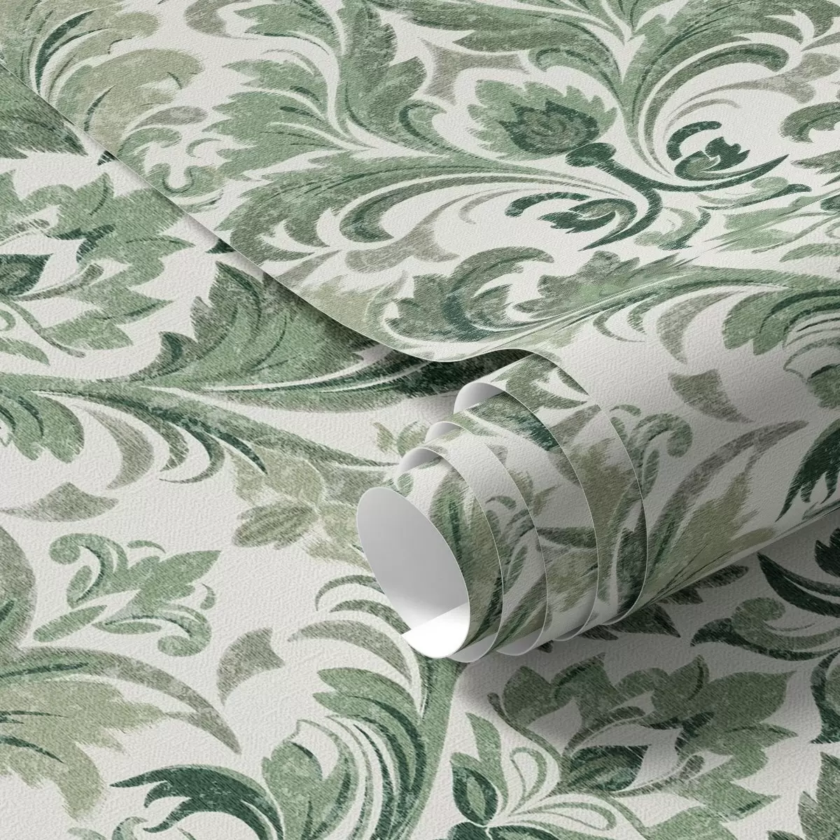 Tapeta Zeleni damast z reliefno teksturo na svetlem ozadju Št. a00692