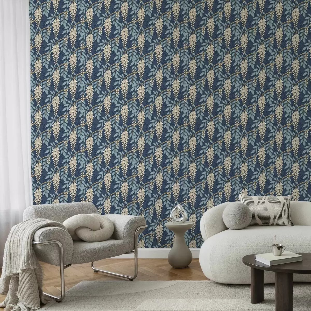 Tapeta Glicinija z modrimi listi na temno modrem ozadju Št. a00694v2