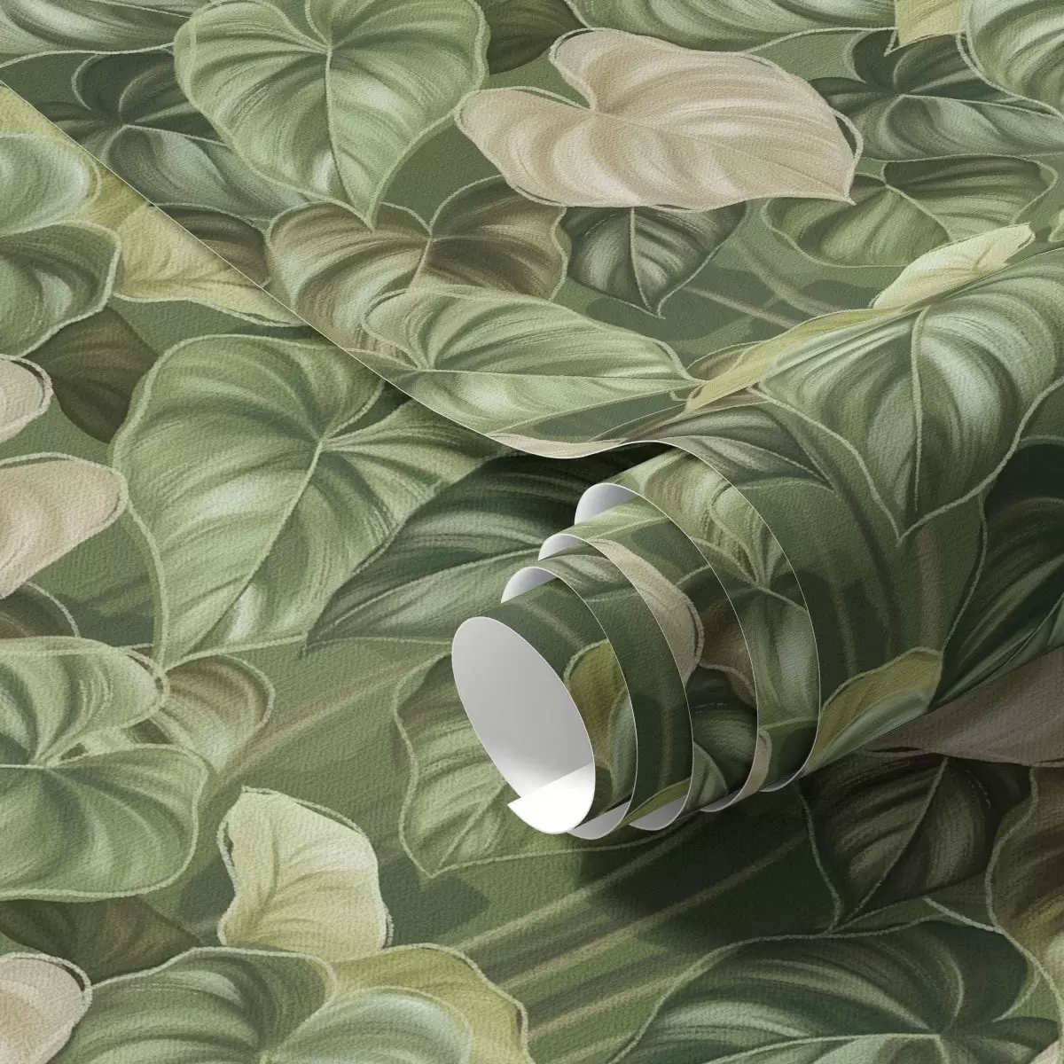 Tapeta Bujne liste filodendrona v odtenkih zelene in slonokoščene barve Št. a00695