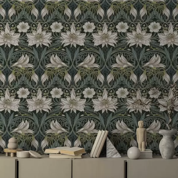 Tapeta Art Nouveau kompozicija z lilijami na temnem ozadju Št. a00696