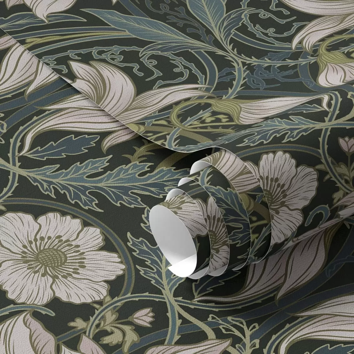 Tapeta Art Nouveau kompozicija z lilijami na temnem ozadju Št. a00696