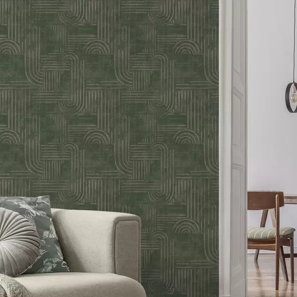 Tapeta Geometrični vzorec z loki v zeleni barvni paleti Št. a00697