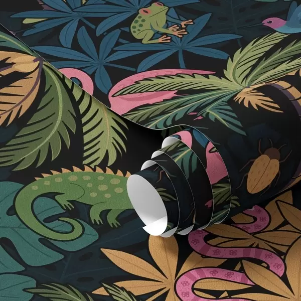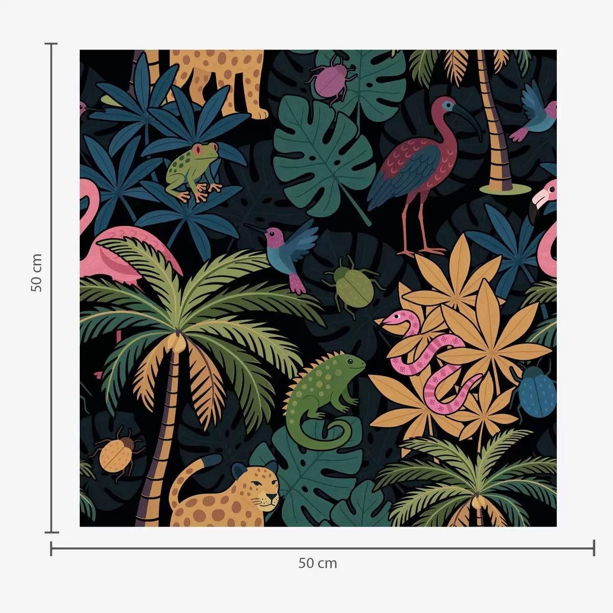 Tapeta Svetle tropske živali med listjem na temnem ozadju Št. a00701
