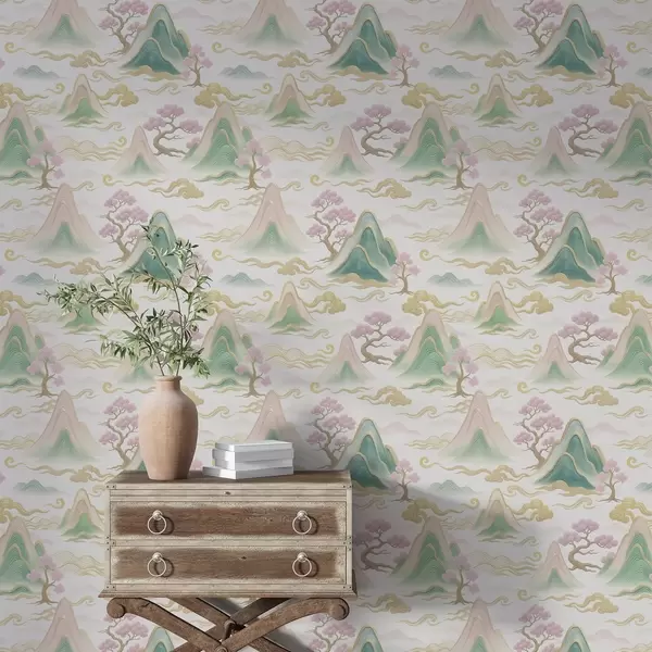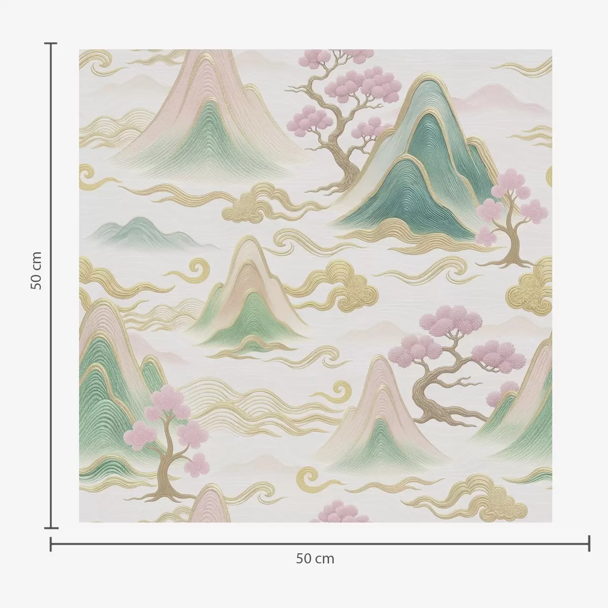 Tapeta Gore, oblaki in borovci v orientalnem dekorativnem slogu Št. a00703