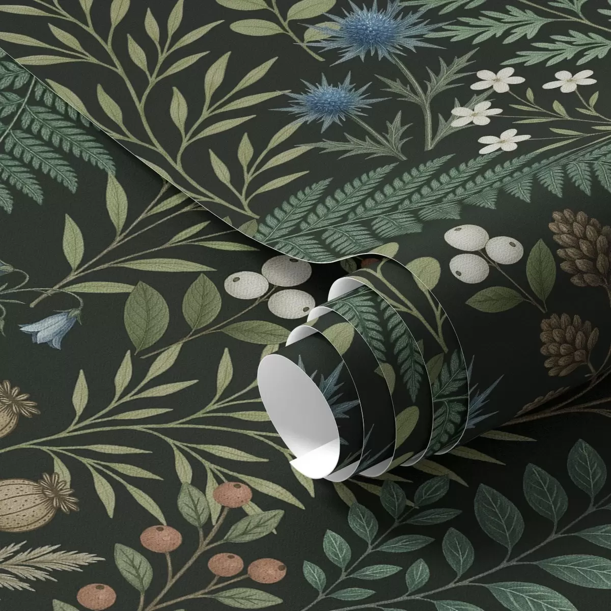Tapeta Poljska trava, jagode in semena na temnem ozadju Št. a00706