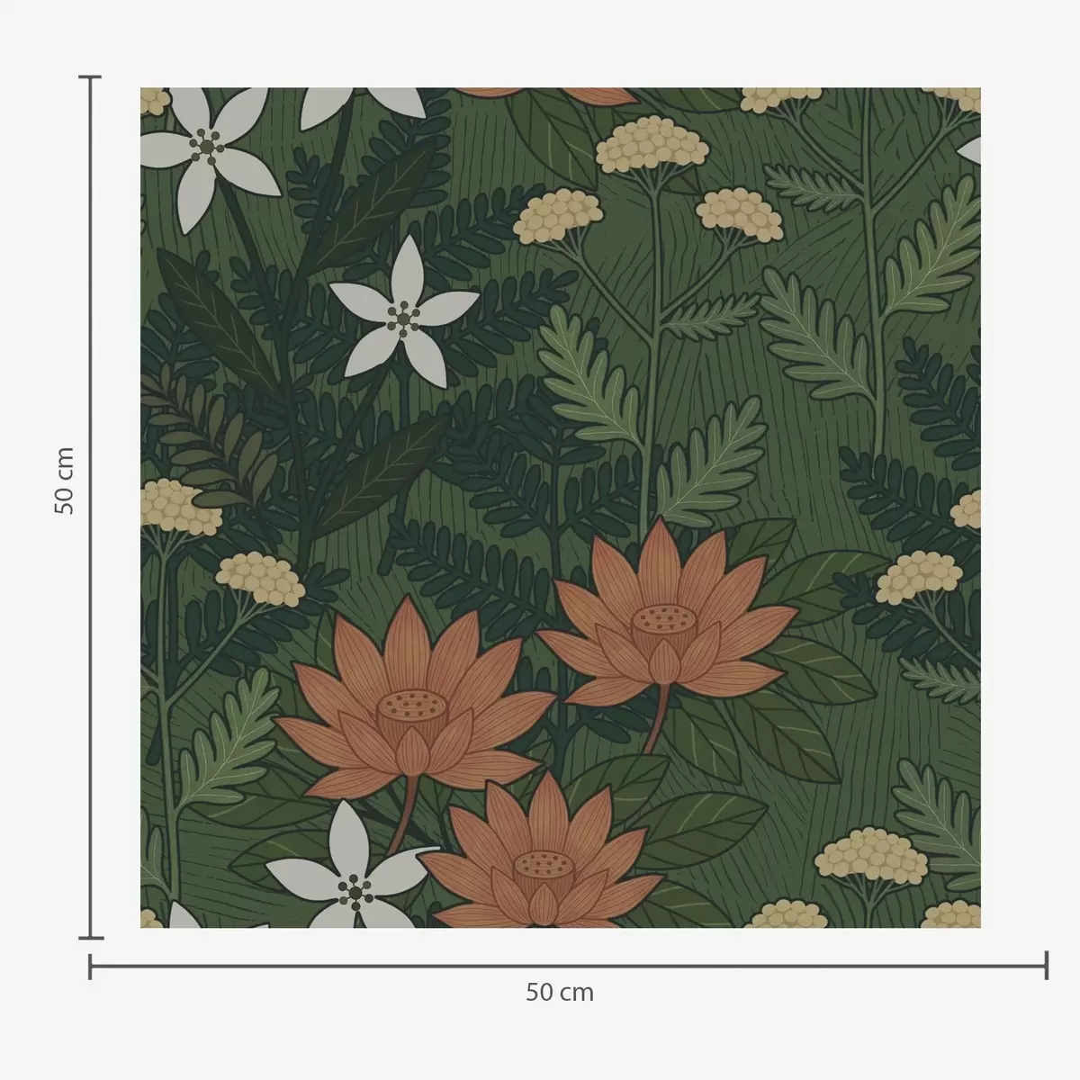 Tapeta Veliki cvetovi med zelenim listjem, dekorativna kompozicija Št. a00708