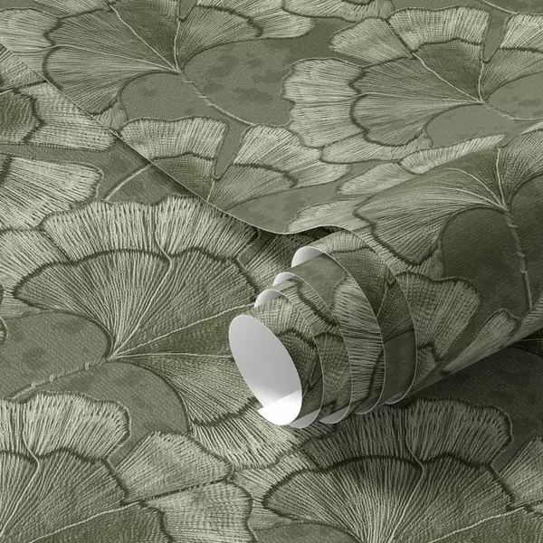 Tapeta Grafični vzorec z ginkgom v hladni zeleni barvni paleti Št. a00709