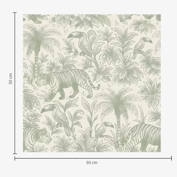 Tapeta Tigri in tropske ptice med palmami na svetlem ozadju Št. a00711