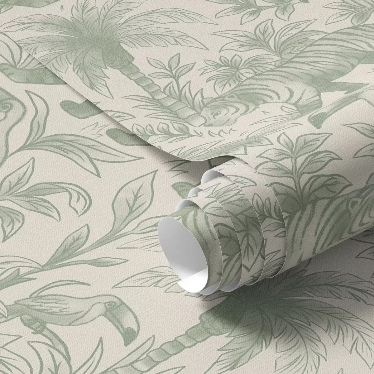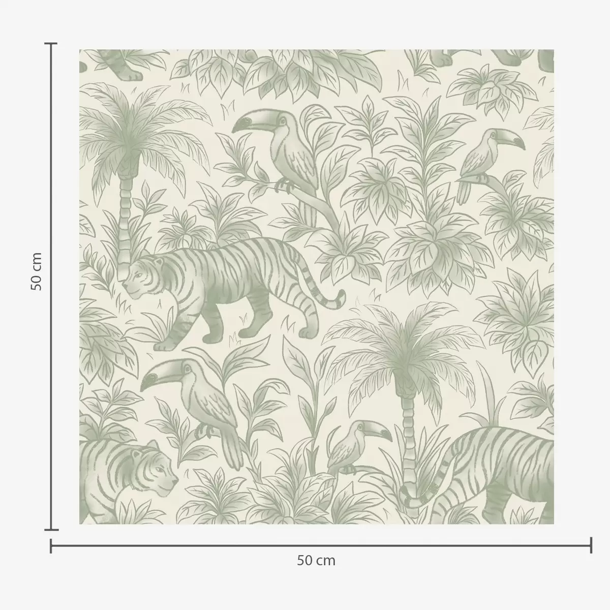 Tapeta Tigri in tropske ptice med palmami na svetlem ozadju Št. a00711