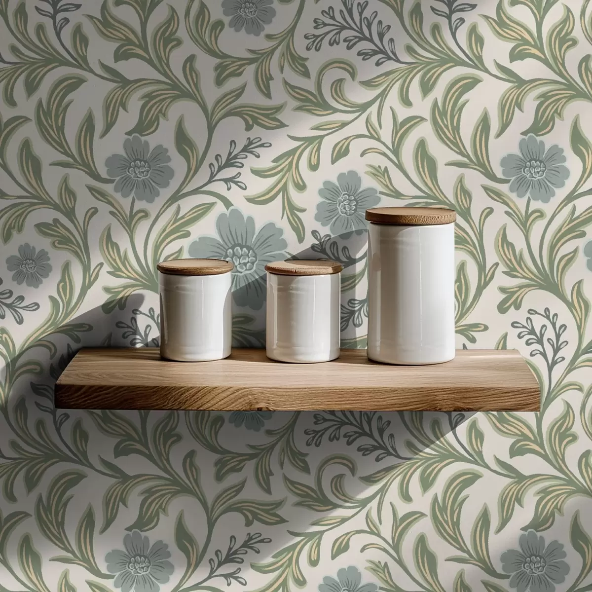 Tapeta Sivkast cvetlični ornament na svetlem ozadju Št. a00712