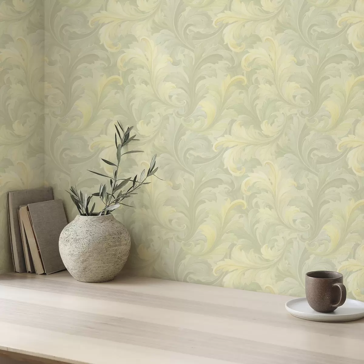 Tapeta Barokni akantovi listi v nežnih odtenkih Št. a00714