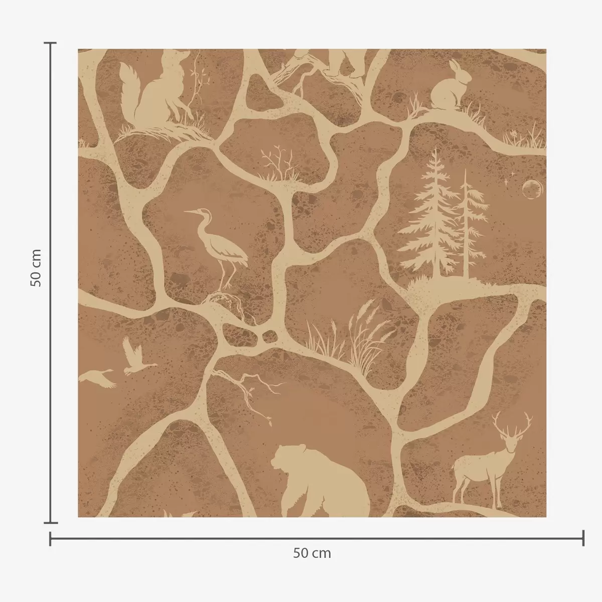 Tapeta Silhuete živali in dreves v naravni pokrajini s kamnito teksturo Št. a00727