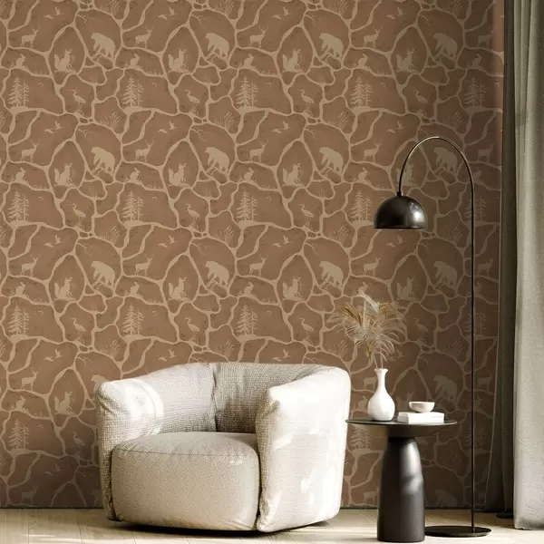 Tapeta Silhuete živali in dreves v naravni pokrajini s kamnito teksturo Št. a00727