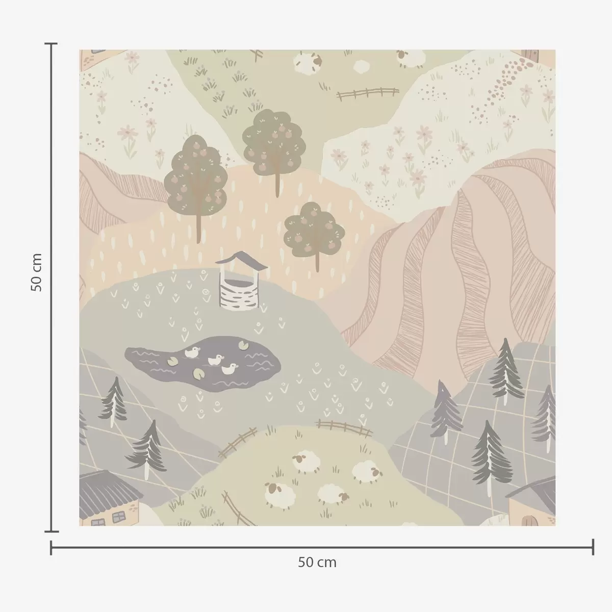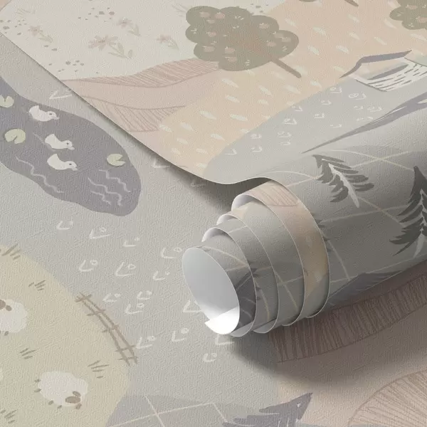 Tapeta Pravljična pokrajina z drevesi, gosi in ovcami Št. a00728