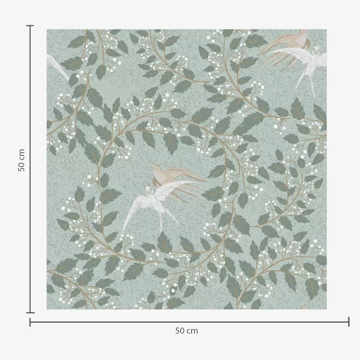 Tapeta Vejice z belimi jagodami in pticami na zelenem ozadju Št. a00731