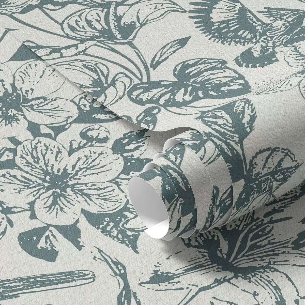 Tapeta Enobarvni cvetlični ornament s pticami Št. a00737