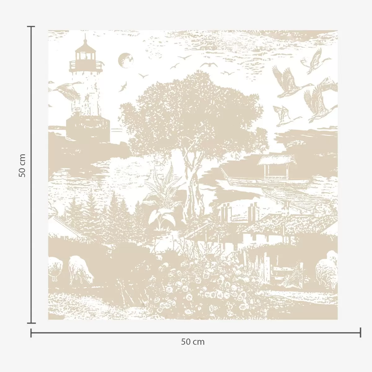 Tapeta Prizor z majakom, drevesi in hišami v sieni Št. a00739