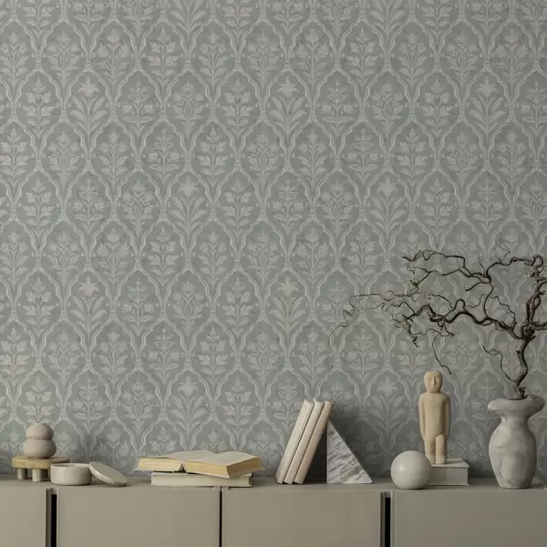 Tapeta Mint damask z drobnimi cvetličnimi medaljoni Št. a00741