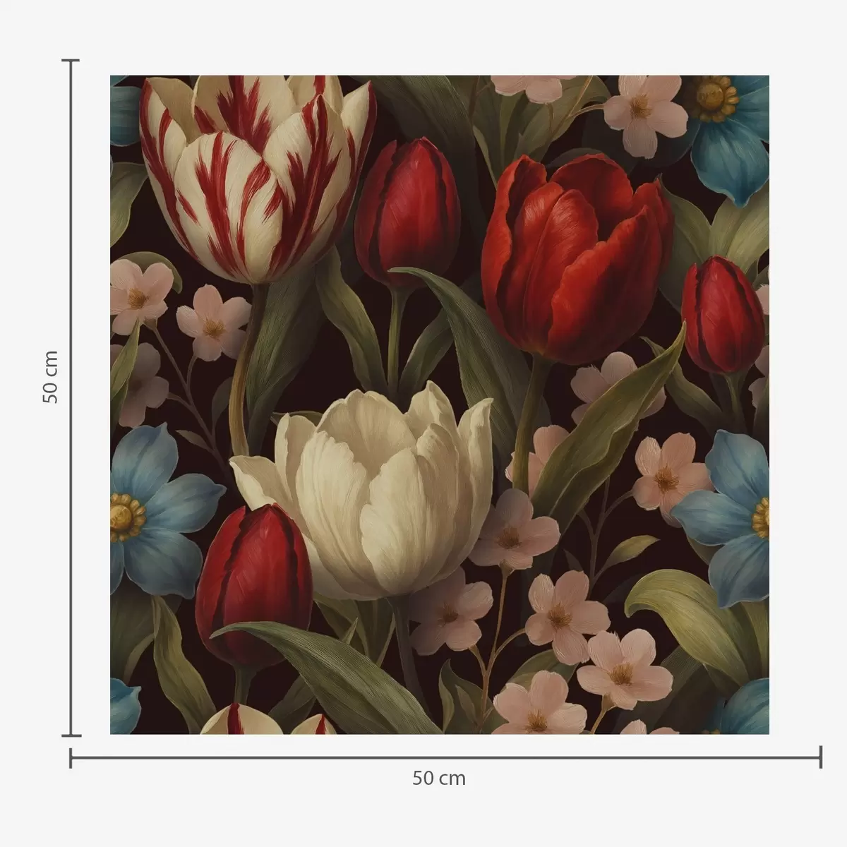 Tapeta Svetle tulipane in modre rože na temnem ozadju Št. a00746