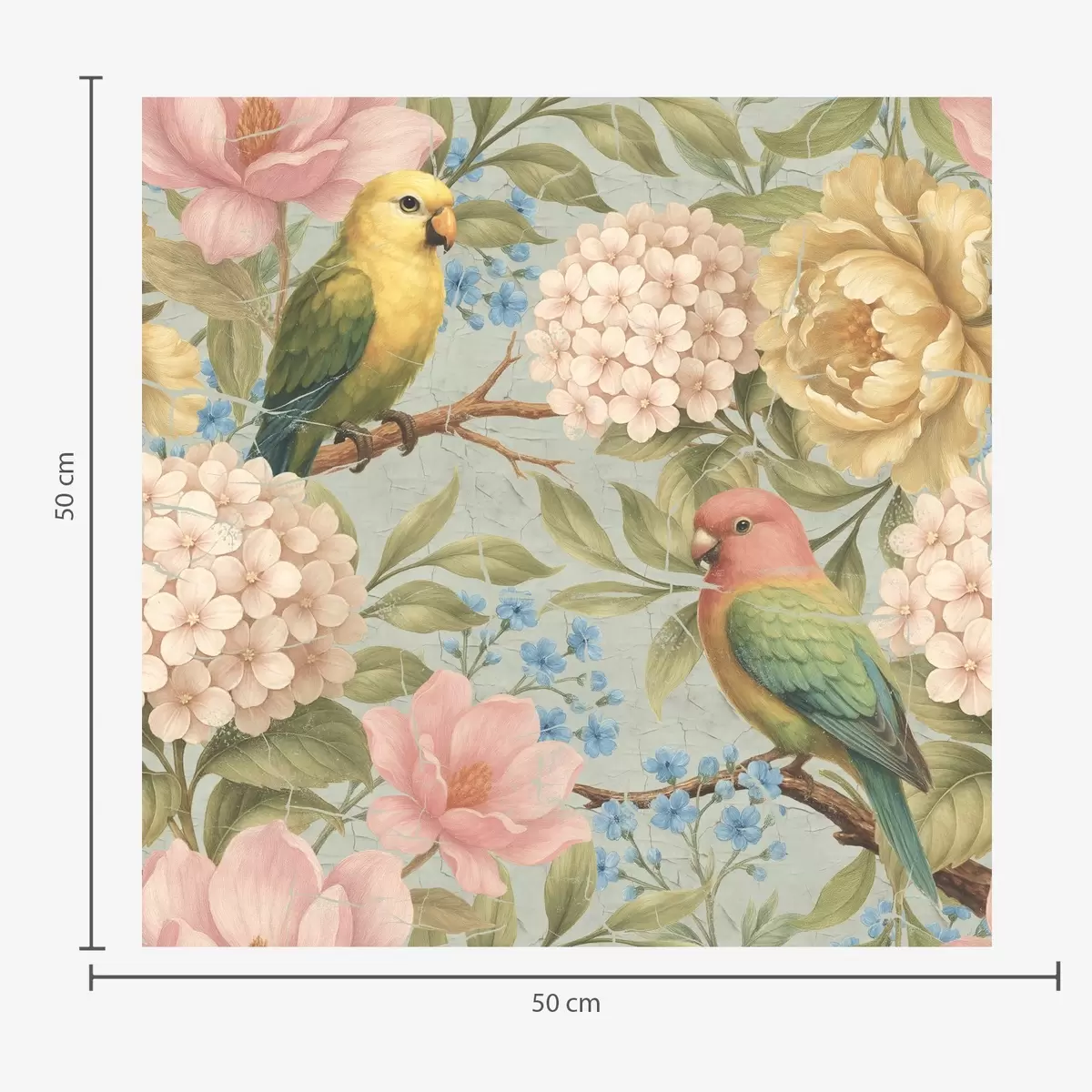 Tapeta Papige med potonikami, hortenzijami in magnolijami Št. a00747