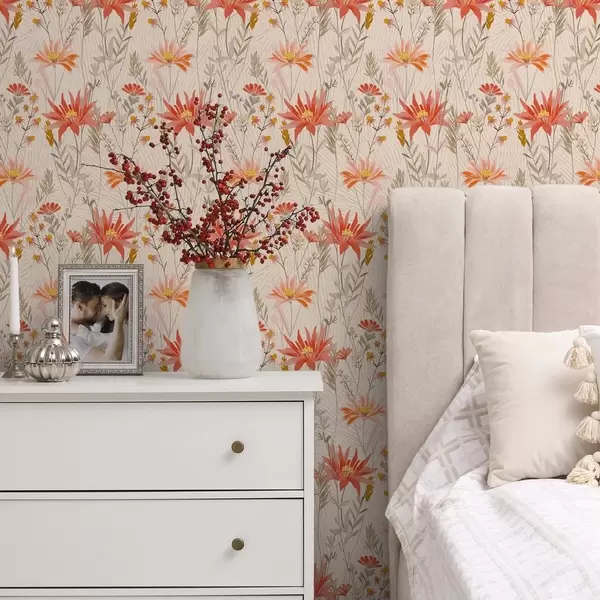 Tapeta Divje rože v toplih tonih na bežnem ozadju Št. a00751