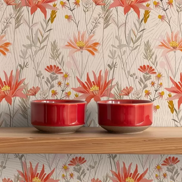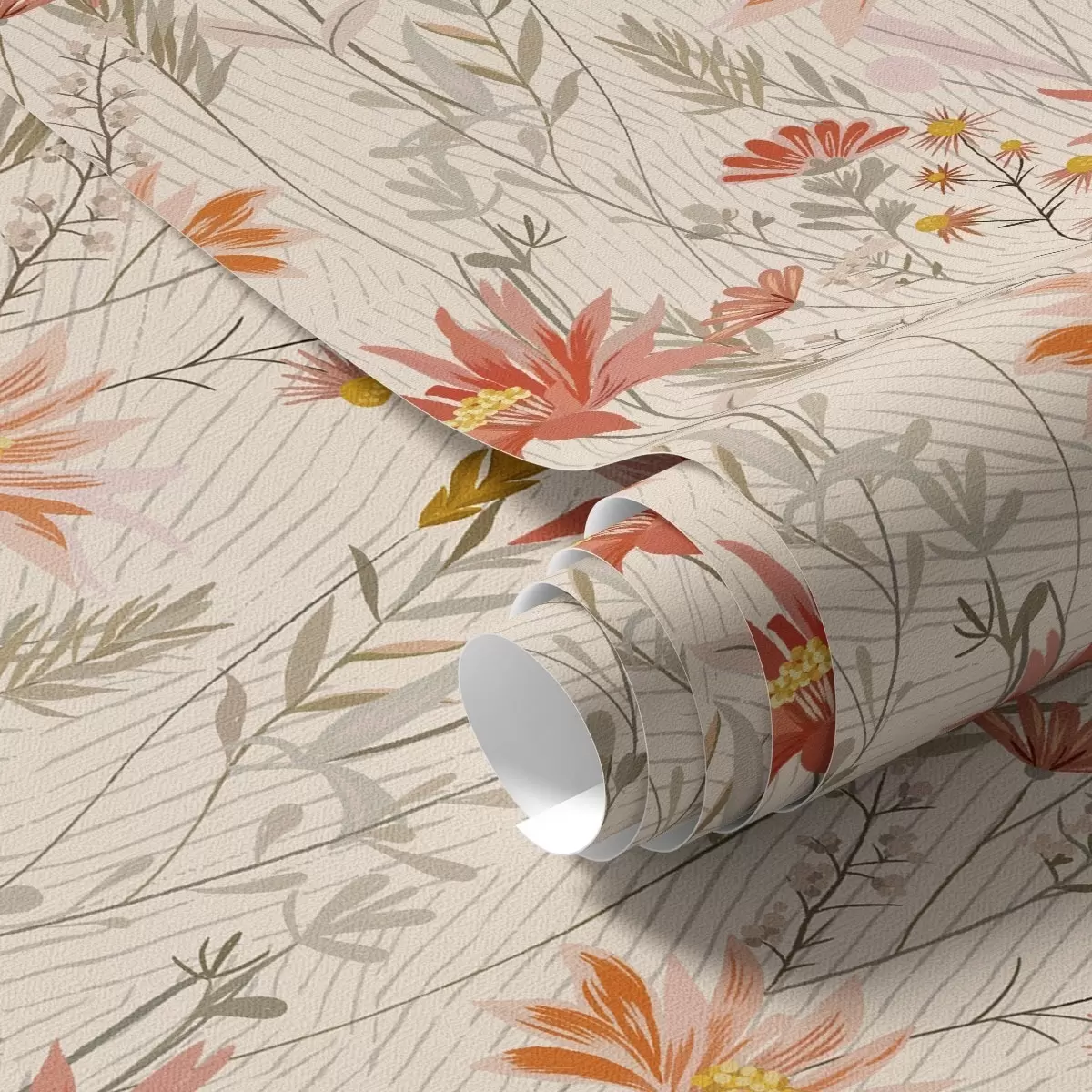 Tapeta Divje rože v toplih tonih na bežnem ozadju Št. a00751
