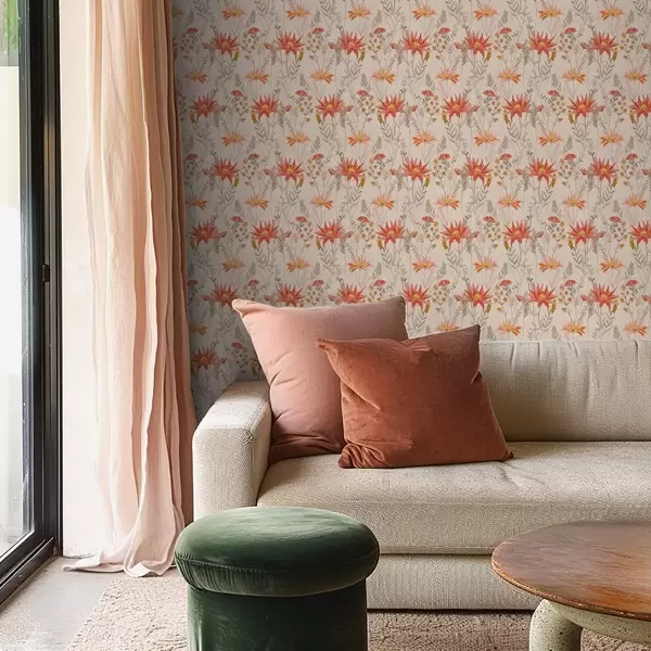 Tapeta Divje rože v toplih tonih na bežnem ozadju Št. a00751
