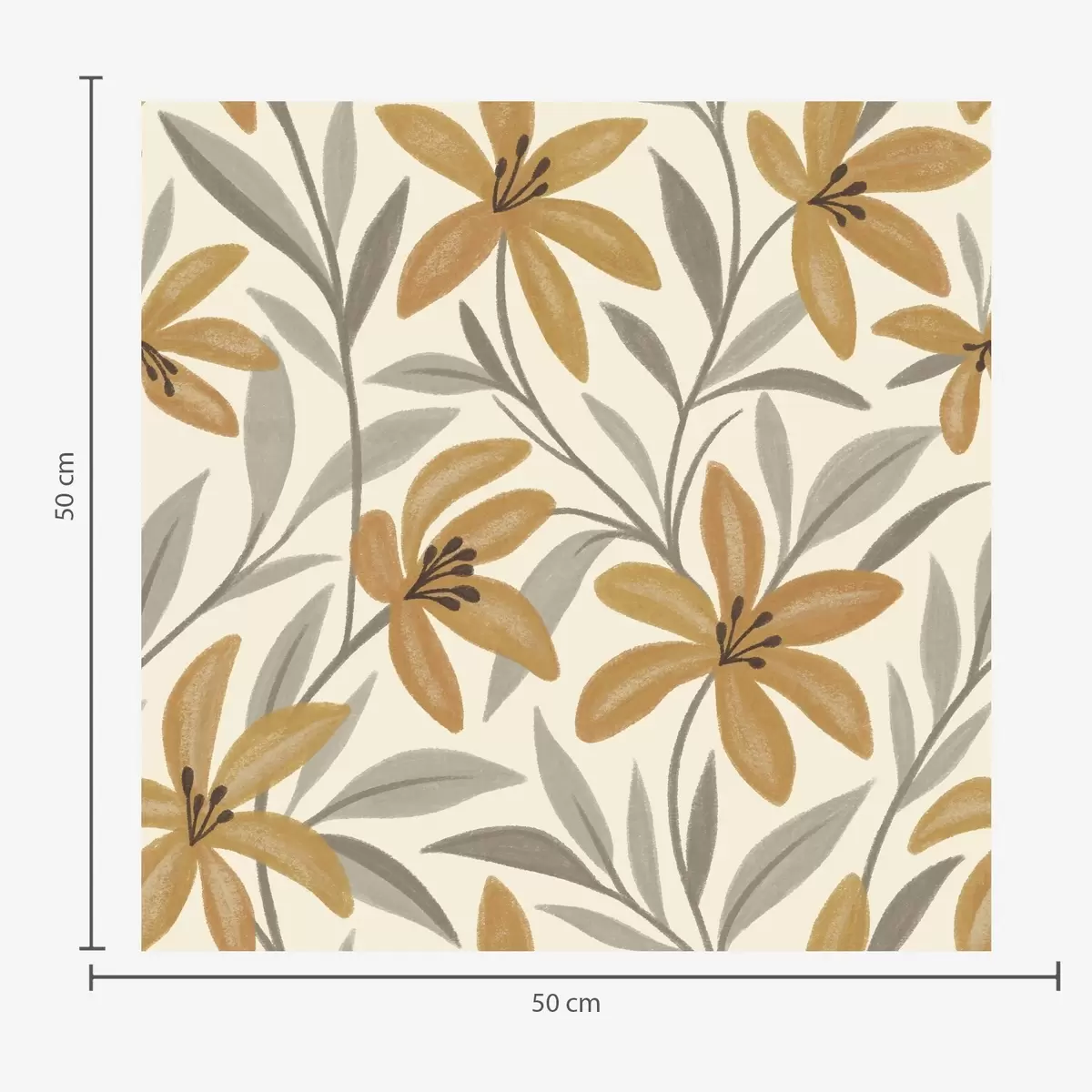 Tapeta Rumene lilije in sivo-zelene liste na svetlem ozadju Št. a00757