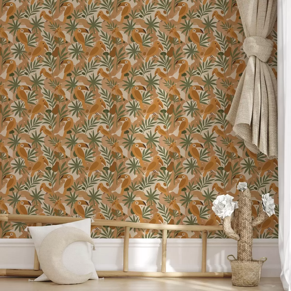 Tapeta Stilizirani tuki med palmovimi listi Št. a00762