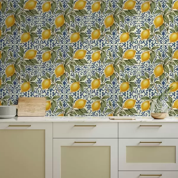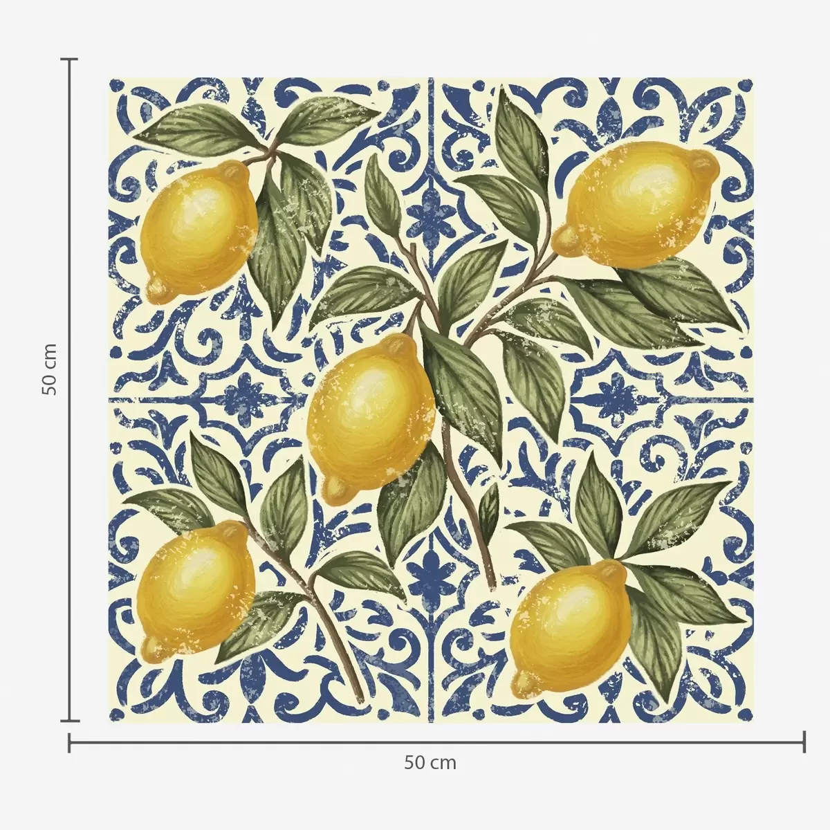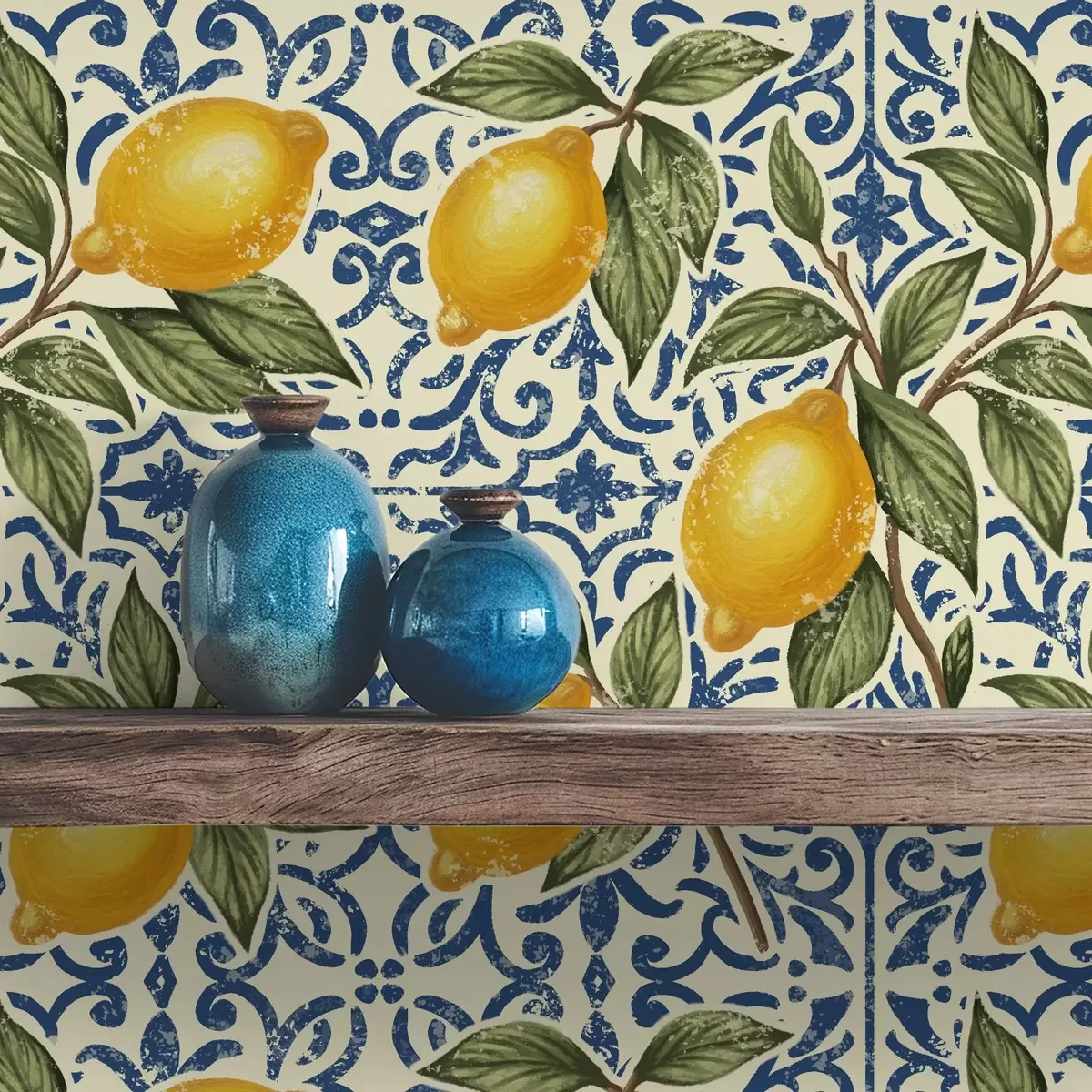 Tapeta Limonine veje z modrim okrasnim ozadjem Št. a00763