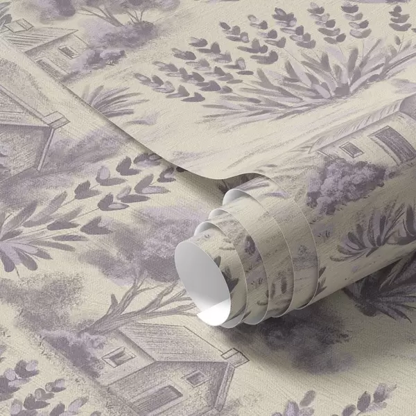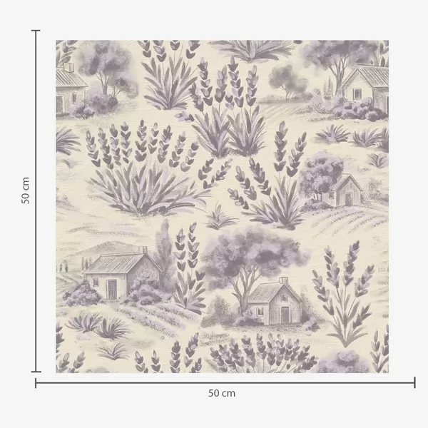 Tapeta Lavender polja in hiše v pastelnih barvah Št. a00765