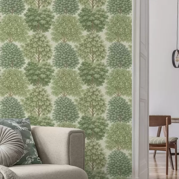 Tapeta Drevesni vrt v nežnih zelenih barvah na svetlem ozadju Št. a00775