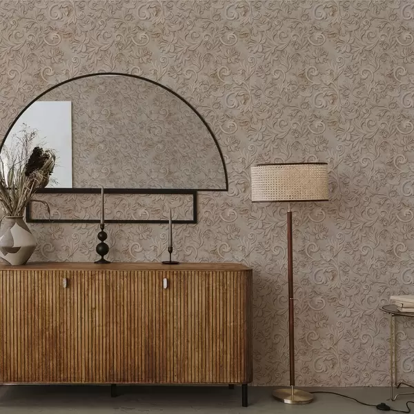 Tapeta Kamenit relief s cvetličnimi vzorci, vintage bež Št. a00784