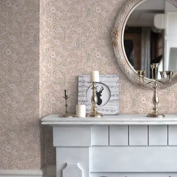 Tapeta Nežni rožnati cvetovi in mehki listi na pastelnih barvah Št. a00788